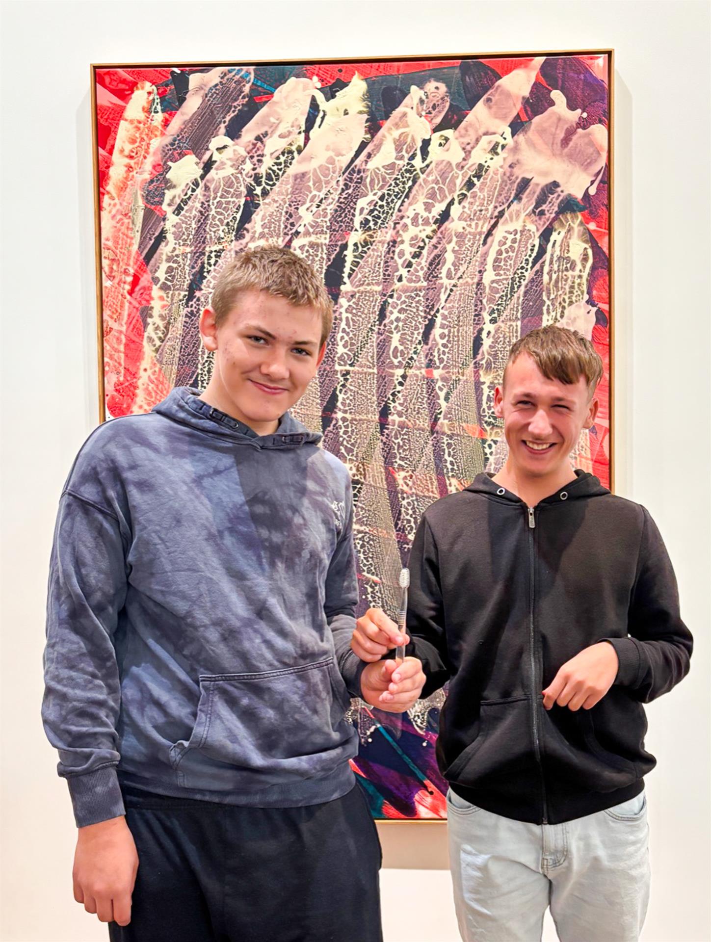 Unter der fachkundigen Begleitung von Kunstvermittlerin Gabriela erhielten die Kinder spannende Einblicke in die Ausdruckskraft von Farben und Formen. Mit Offenheit und Neugier gingen sie auf Entdeckungsreise durch die farbenprächtigen Werke des Museums und machten dabei überraschende Beobachtungen: Mal erinnerte ein Bild an einen Fisch, mal schien es, als sei mit Zahnpasta oder einem Schneebesen gemalt worden.