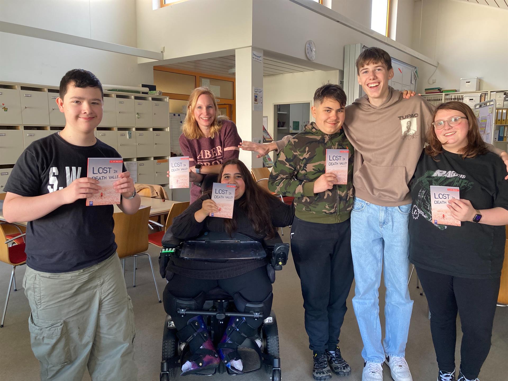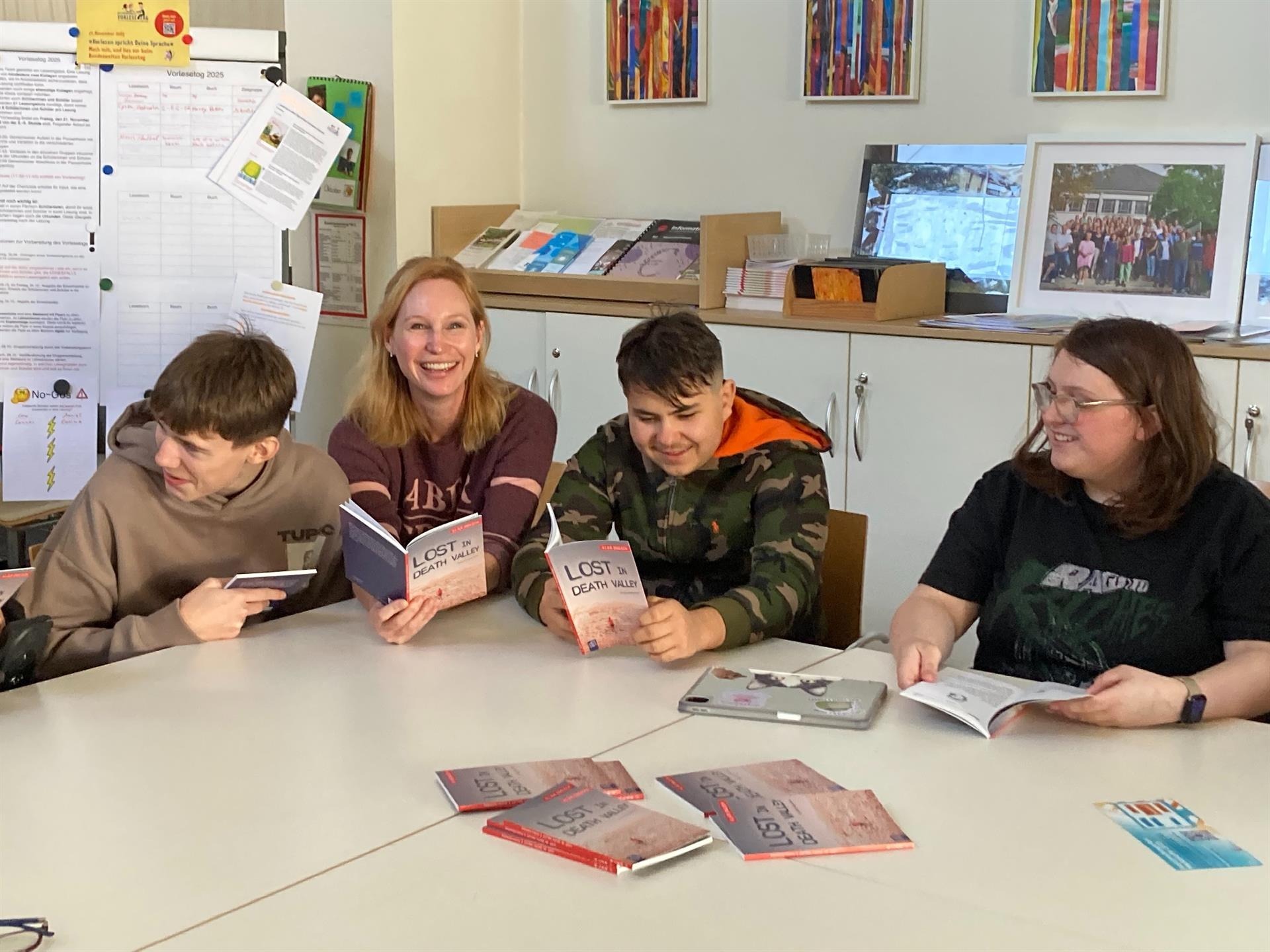 Bis zum Ende verriet Christina Meisterburg nicht, dass die Lektüre in Wahrheit ein gemeinsames Projekt war. Erst später erfuhren die Schülerinnen und Schüler, dass „Lost in Death Valley“ nicht aus einem Verlag stammte, sondern aus ihrer eigenen Klasse. Als die Geschichte schließlich gedruckt und mit Illustrationen der Jugendlichen versehen wurde, hielten alle ein ganz besonderes Andenken in den Händen – ein Buch, das ihr gemeinsames Lernen festhielt.