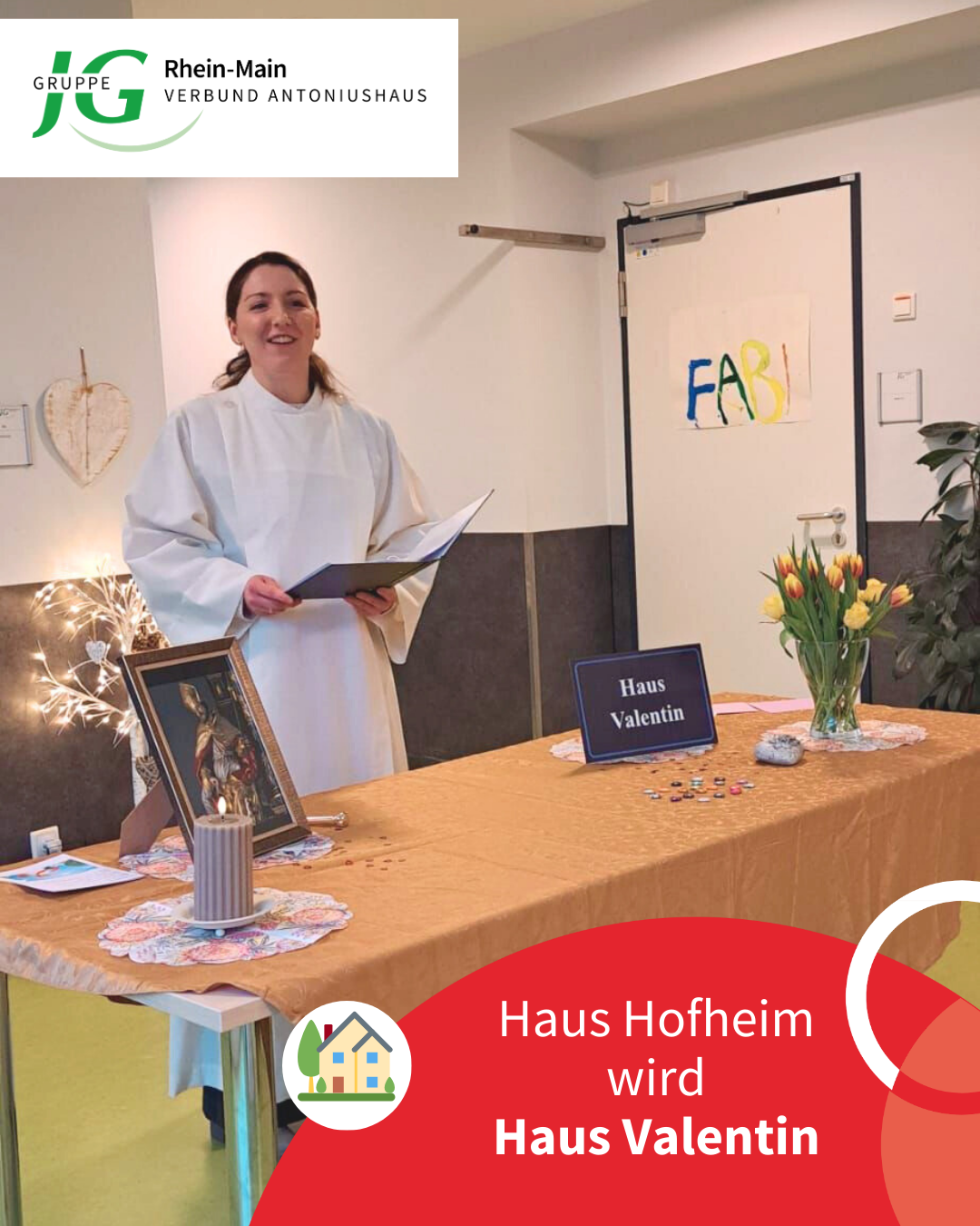 Hofheim, 11. Februar 2026 – Das bisherige Haus Hofheim im Verbund Antoniushaus der JG Rhein-Main trägt ab sofort den neuen Namen Haus Valentin. Mit der Umbenennung erhält das Haus einen Namen, der für Wertschätzung, Nächstenliebe und gelebte Gemeinschaft steht.