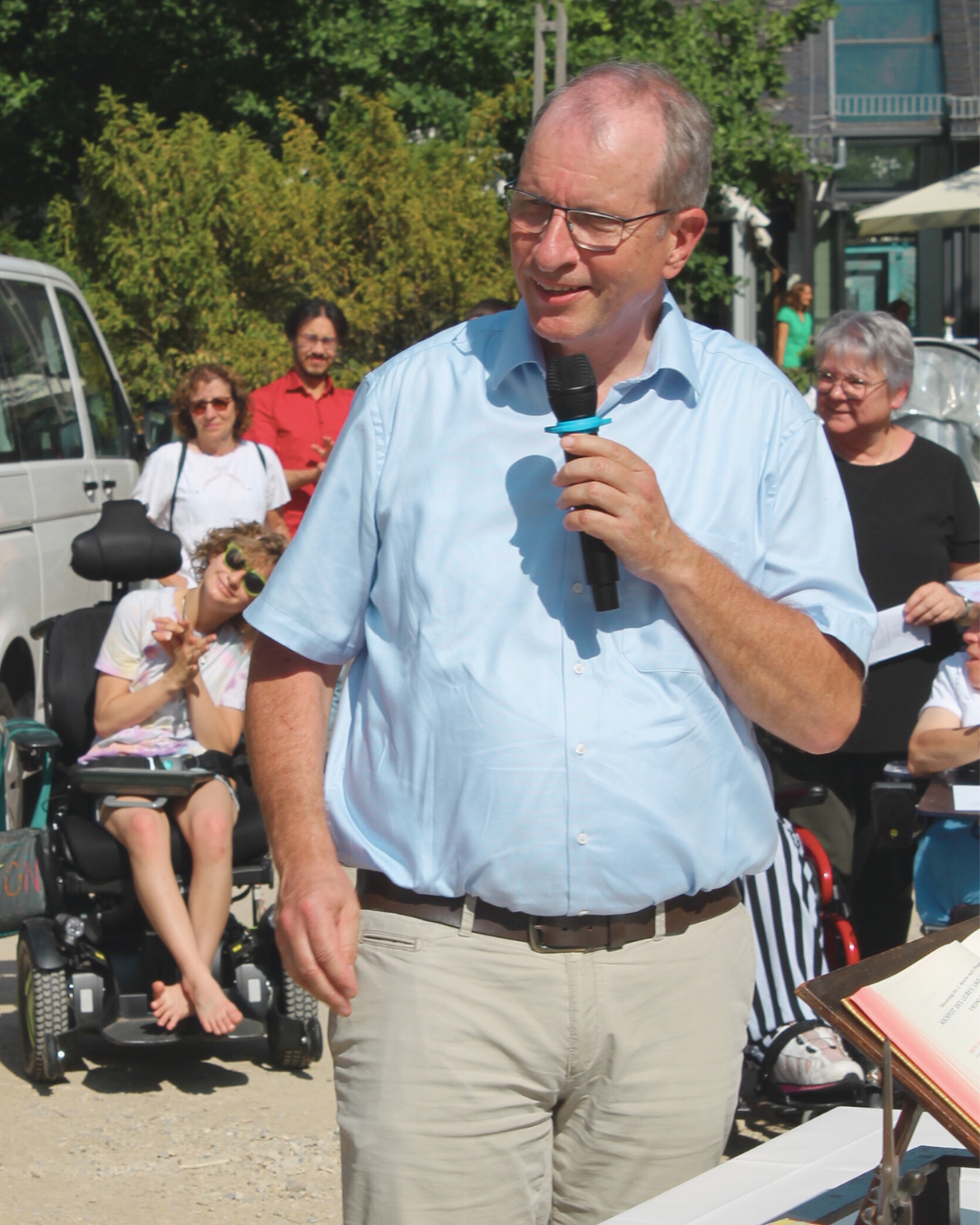 Landrat Michael Cyriax richtete auch das Wort an die Richtfestgäste: „Das Antoniushaus leistet einen wichtigen Beitrag zur Inklusion im Main-Taunus-Kreis“, so Landrat Michael Cyriax während des Richtfestes, „und das neue Wohnhaus zeigt sinnbildlich, wie hier gearbeitet wird: Hier finden Menschen mit Beeinträchtigungen so viel Unterstützung wie nötig, aber auch so viel Selbstständigkeit wie möglich.“ Der Main-Taunus-Kreis beteiligt sich mit fast 10 Mio. Euro an den Kosten der aktuell parallellaufenden Erweiterung und Sanierung der Peter-Josef-Briefs-Schule.