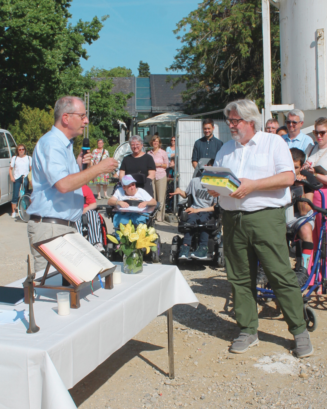 Viele Gäste, darunter zukünftige Bewohner:innen, Angehörige, Mitarbeitende des Verbunds Antoniushaus und Partner:innen des Projekts, versammelten sich am 12. Juni auf dem Campus des Antoniushauses, um gemeinsam mit Musik, Begegnung und einem symbolischen Richtspruch diesen besonderen Moment zu würdigen.